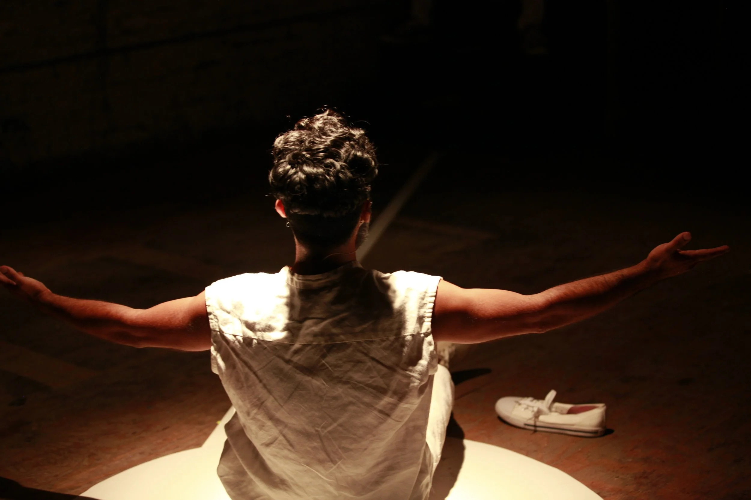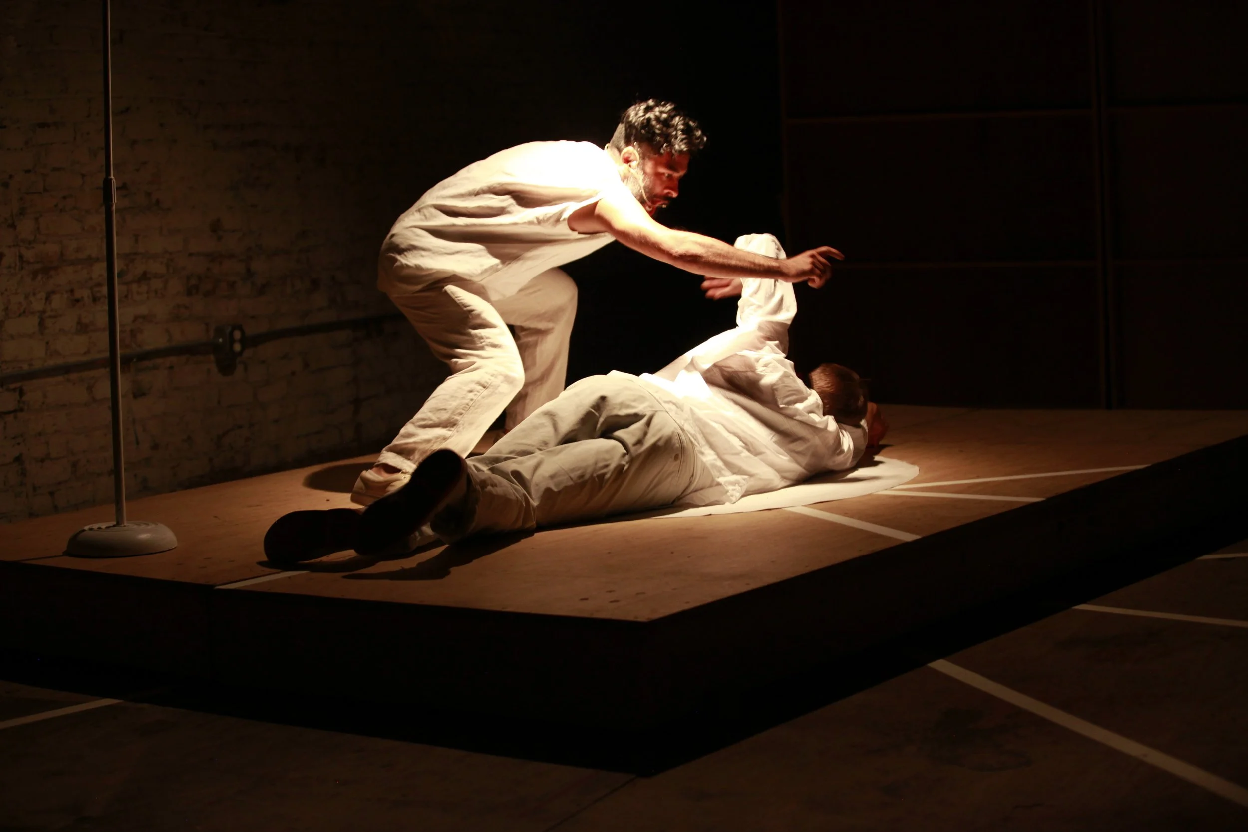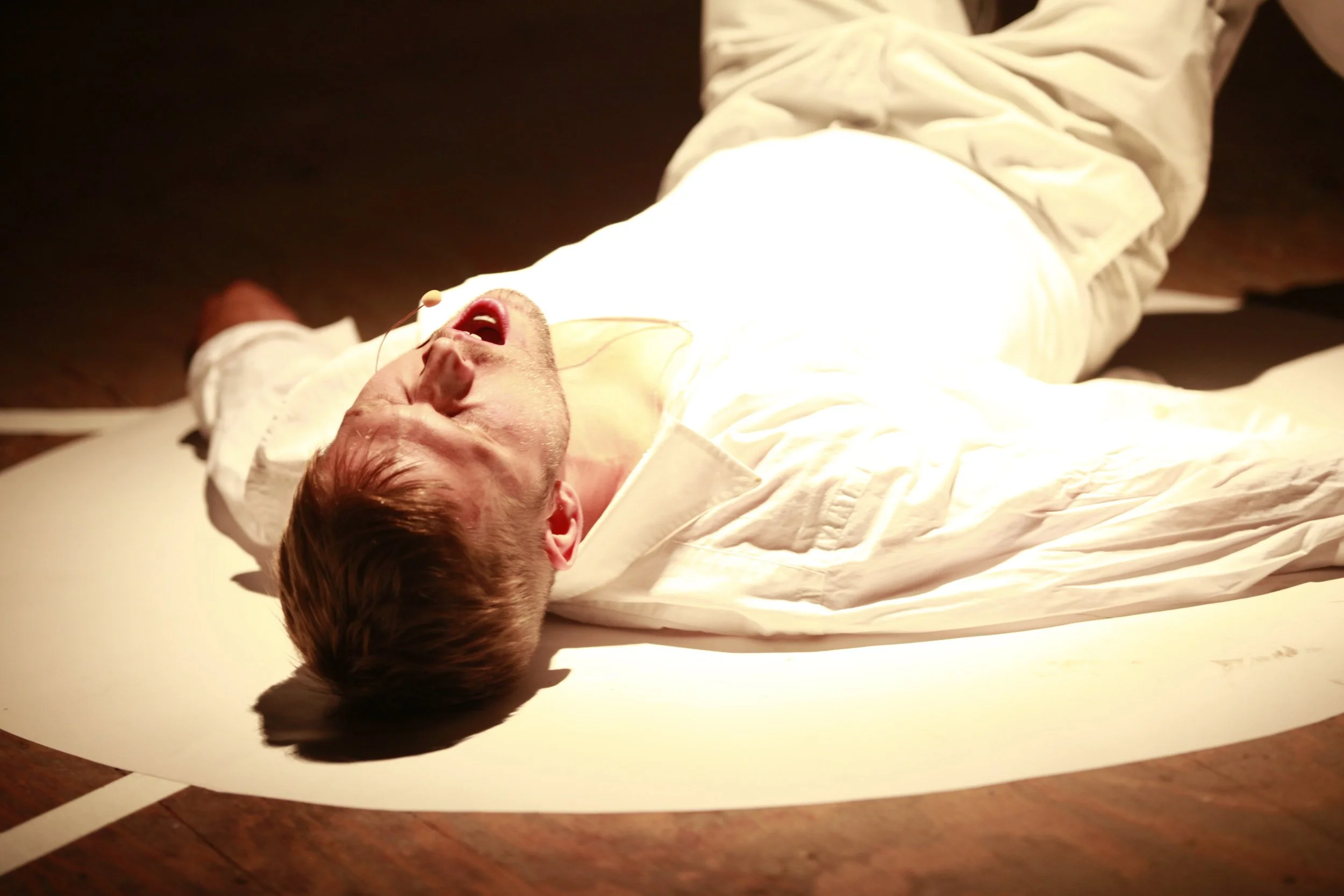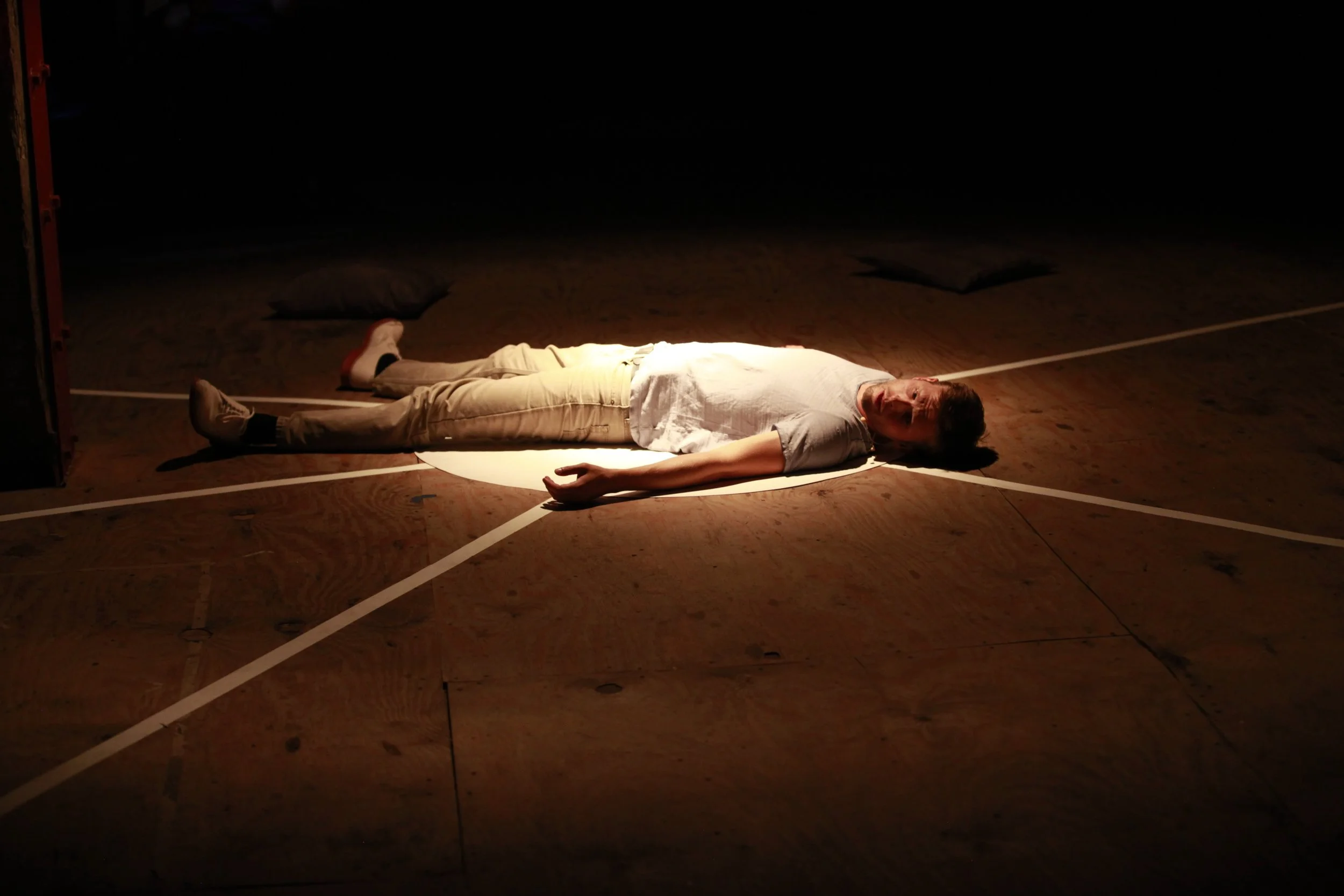 Decameron is a music/theater piece that uses earworms to create an immersive sound performance and installation. The piece is loosely based on Bocaccio’s 16th-century Decameron, in which ten youths, retreating from the plague, tell one-hundred stories. In the Decameron, interviews about earworms inspire one hundred 15-second miniatures, each an intricately designed collage. A dense sound score of samples, foley, and counting ties together the hundred fragments, and a gestural vocabulary is developed in lock-step with these 100 vignettes. The performers guide the audience and traverse the space, and the stage, an open-arena black box, is dotted with circular platforms and specially designed speaker chandeliers. letting the audience wander anywhere. The final production is an installation, lasting a half-hour, but looped for three hours, in which the audience comes and goes, ushered in by the five performers. The stage evokes something of an arena-style decathlon, charismatic possession, and a recovery ward of musical exorcism. The end installation is a surreal, collaged yearbook of how identity is revealed through day-to-day listening, and reflects on the original Decameron’s themes of retreat and morality in a time of plague. The result is visceral theater with meticulous sound design, “operatic in scope, unfolding in layers that constantly reveal new meanings.” (Culturebot)